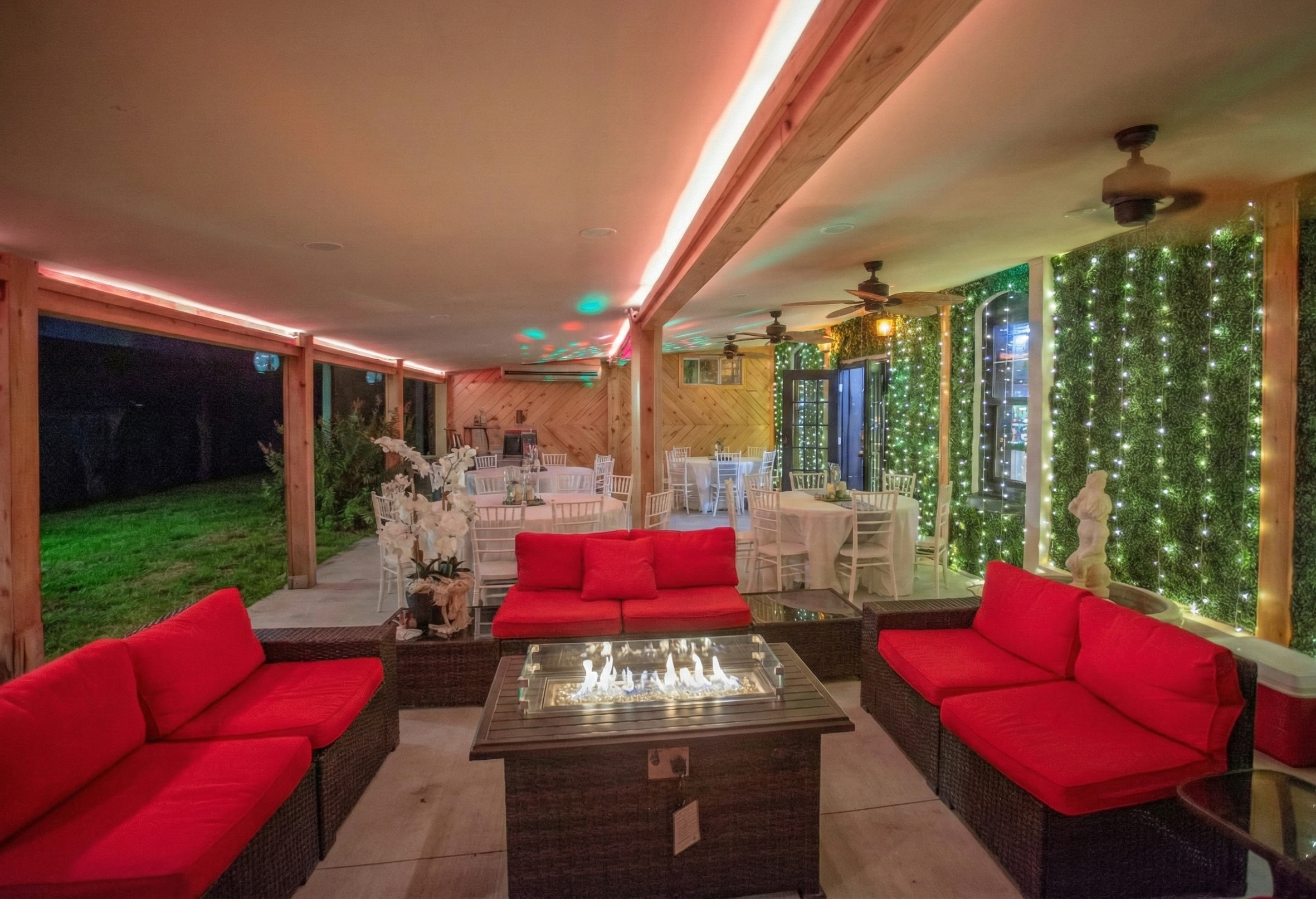 Host a sophisticated reception in our restored Carriage House, featuring a beautiful bar and covered patio.